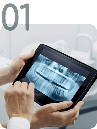 牙醫師透過專業儀器與影像,評估牙齒狀況,確認病灶範圍與牙根構造,擬定治療計畫。