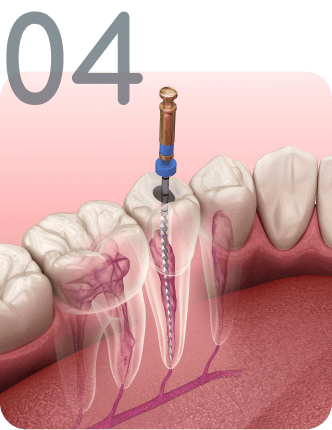 使用精密器械擴大根管,徹底清除管內組織與殘留病灶。
